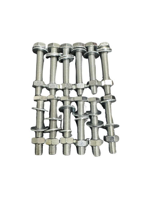 Installation kit for our roof racks Includes: 12 Bolts + 24 Washers + 12 Nuts High tensile Galvanized bolts Length: 70mm Diameter: m10